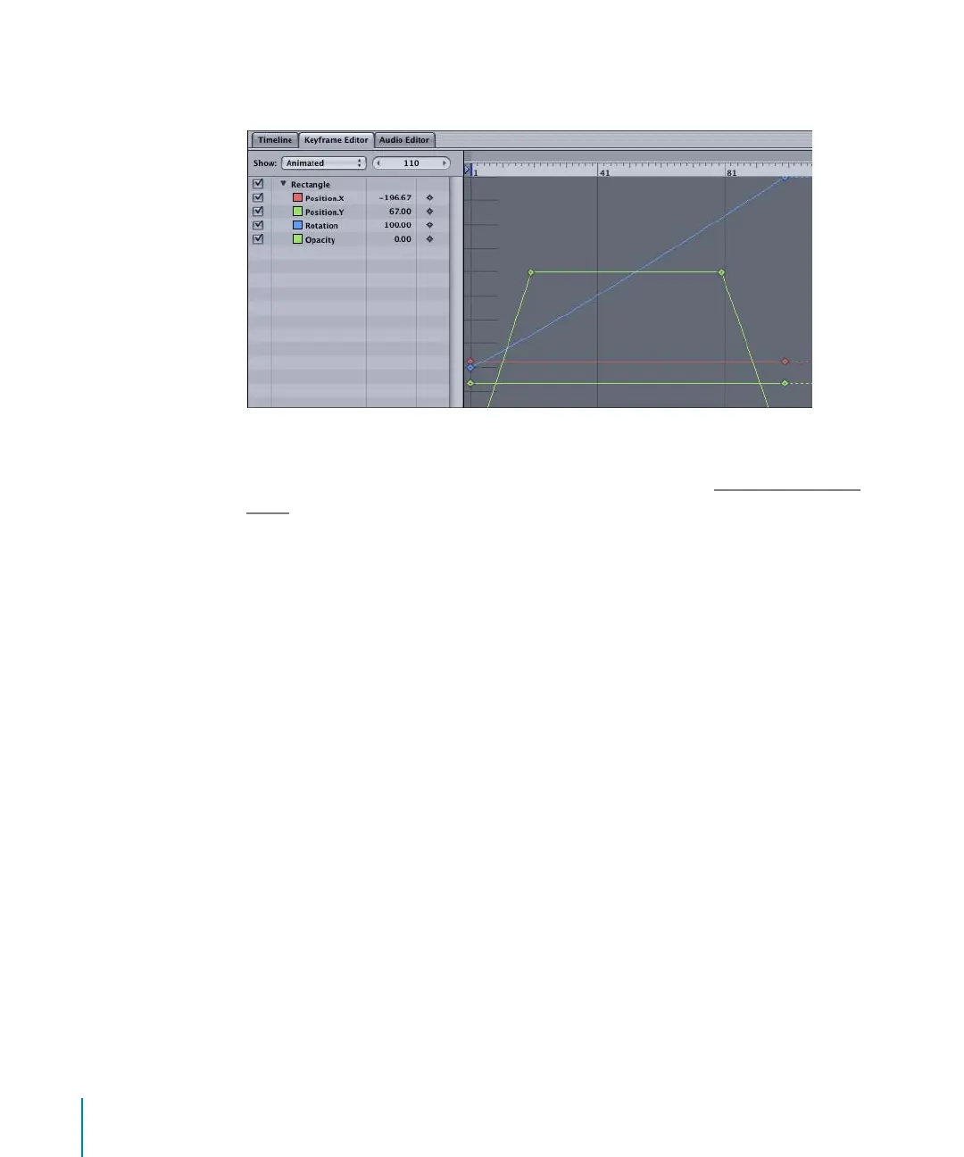 The curves for the converted keyframes appear in the graph area of the Keyframe
