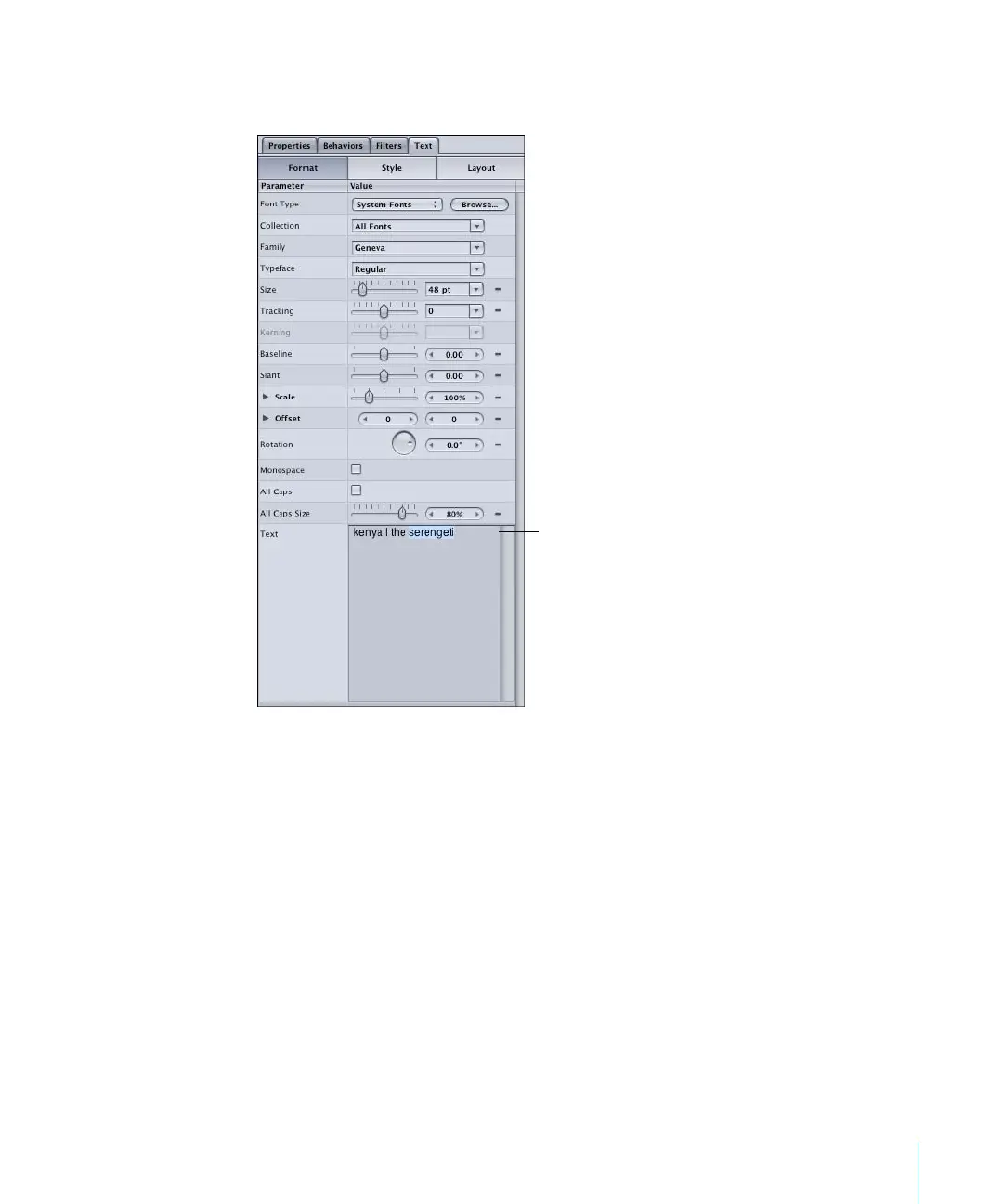 Select the text object, and display the Inspector. In the Format pane of the Text tab,