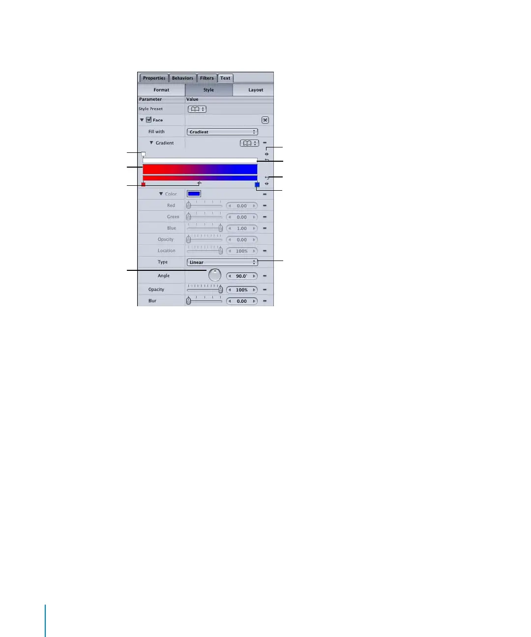 creating animated text gradients, see Chapter 7, “Using Text,” in Motion Help.
