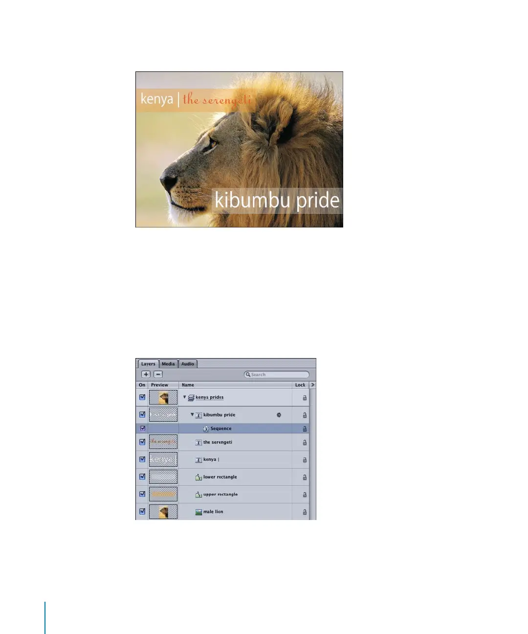Opacity and Scale parameters of a text object in sequence.