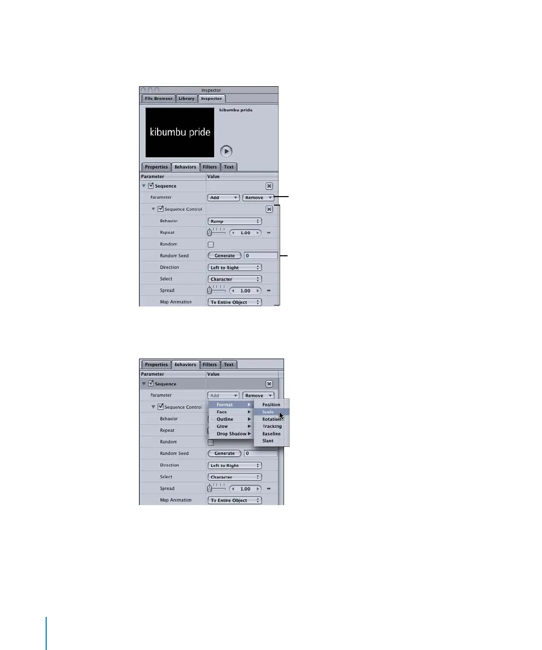 2 In the Parameter row, click the Add button, choose Format, then Scale from the