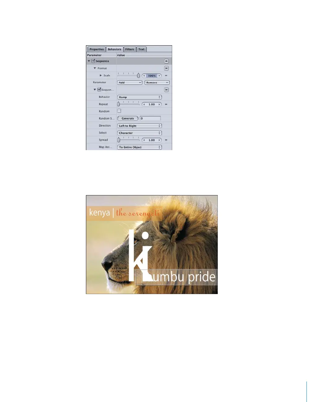 The first character begins at 100 percent, scales up to 500 percent, and then scales back