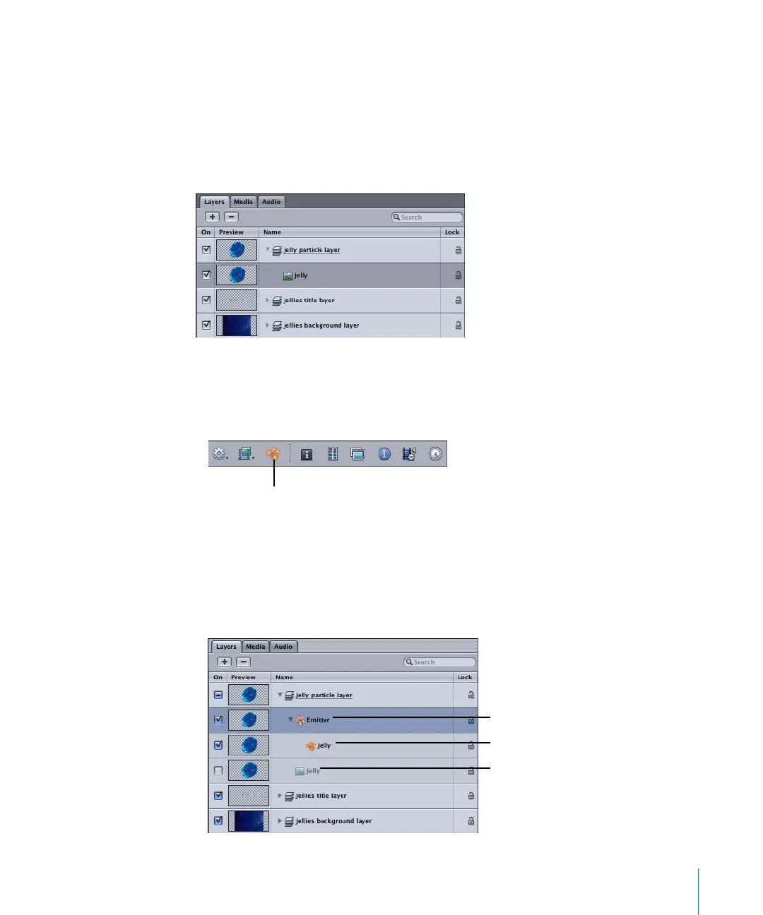 • The “jelly” object becomes an emitter source for the new particle cell.