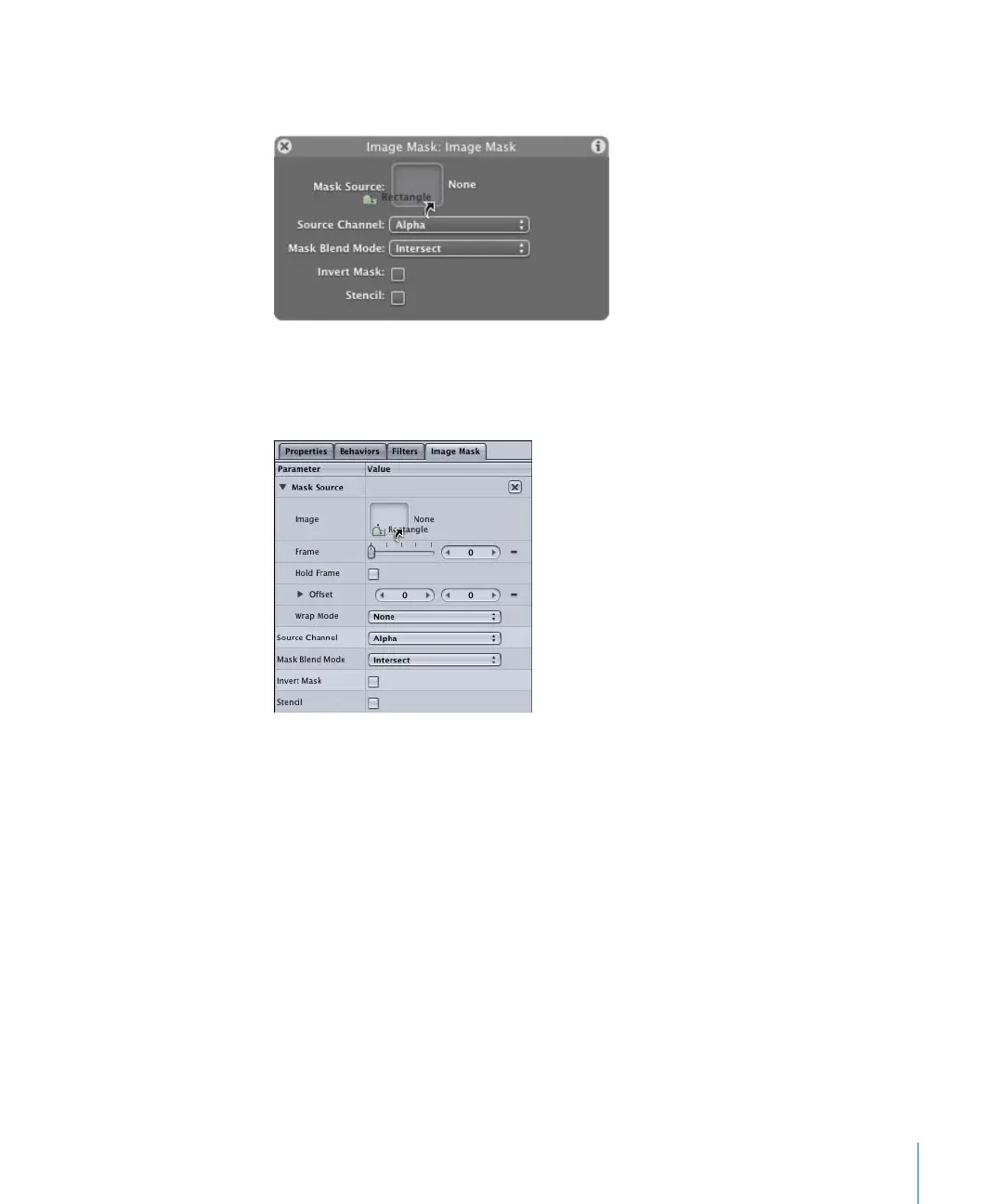 • Display the Mask tab in the Inspector. Click-drag the shape that you want to use as a