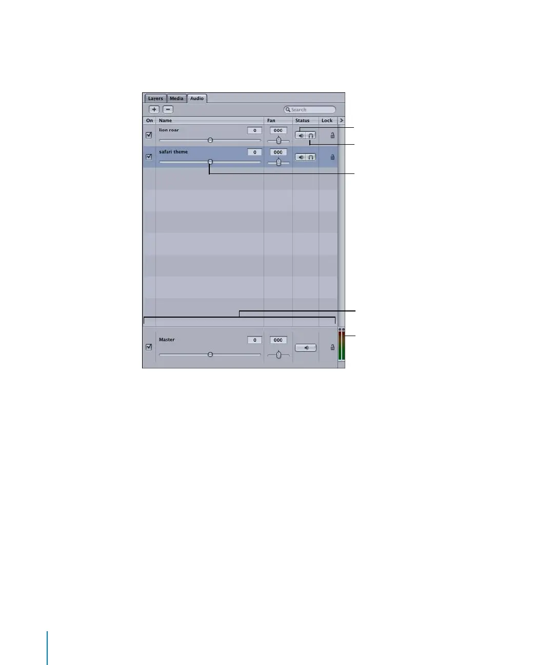 The Master audio track is selected. This track represents the automatic sum of all audio