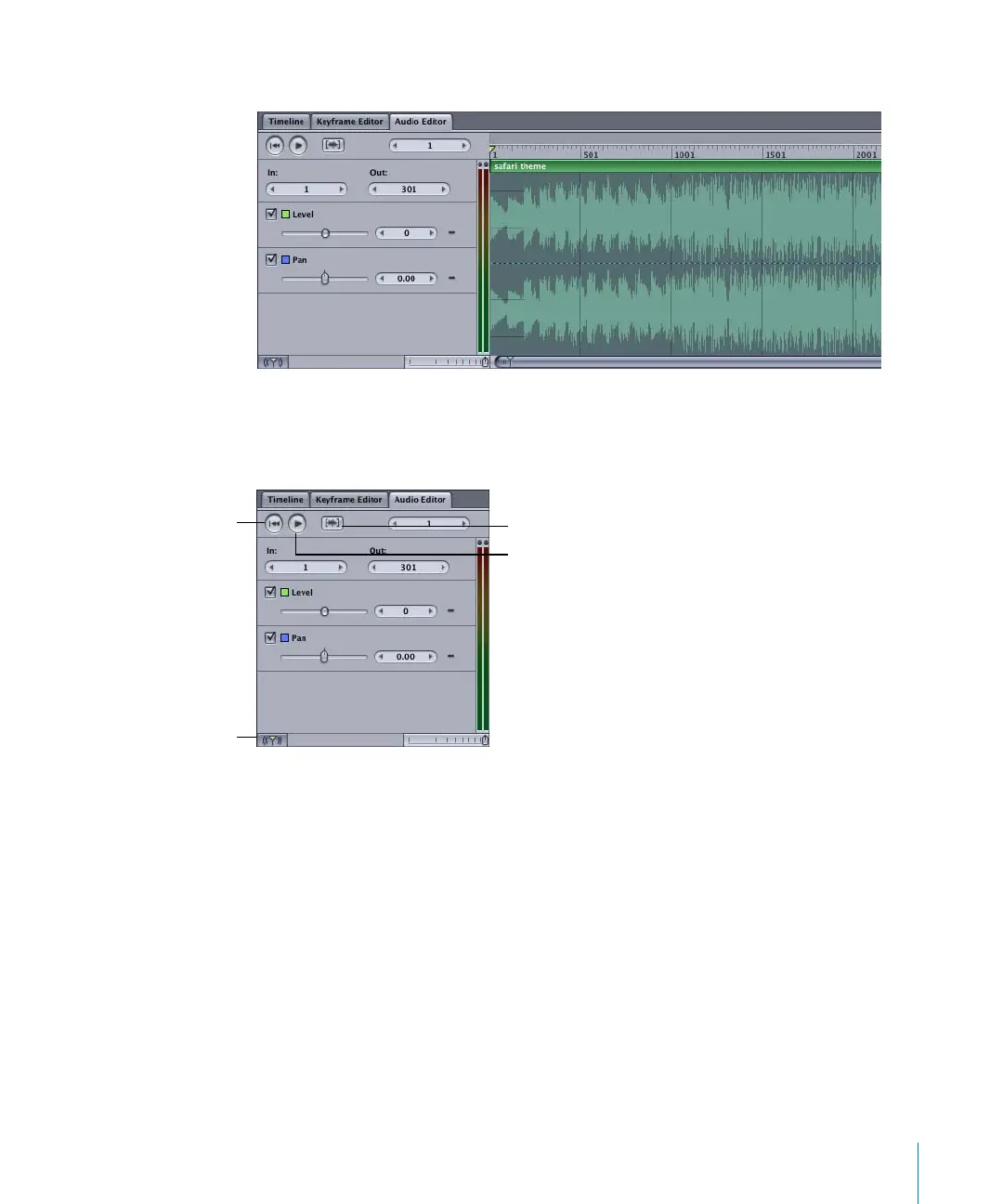 Use the transport controls in the Audio Editor to play the audio files in your project. You