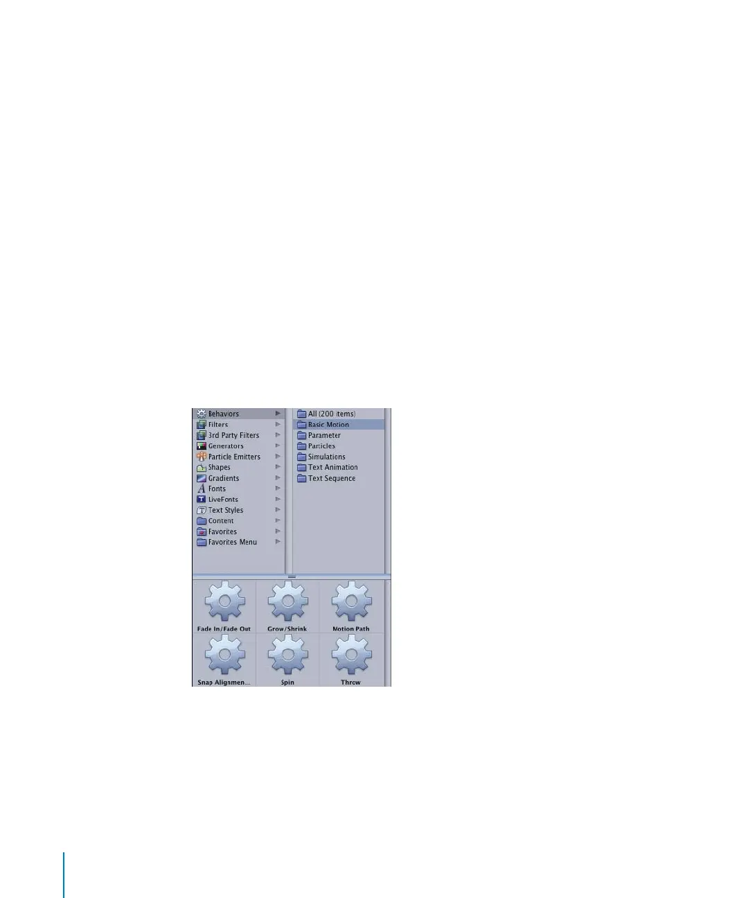 two behaviors from the Basic Motion group are applied to an object in the Canvas. The