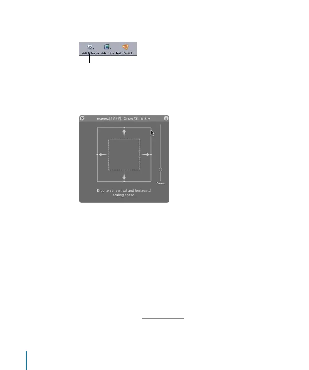 2 In the Toolbar, click the Add Behavior icon, then choose Basic Motion > Grow/Shrink