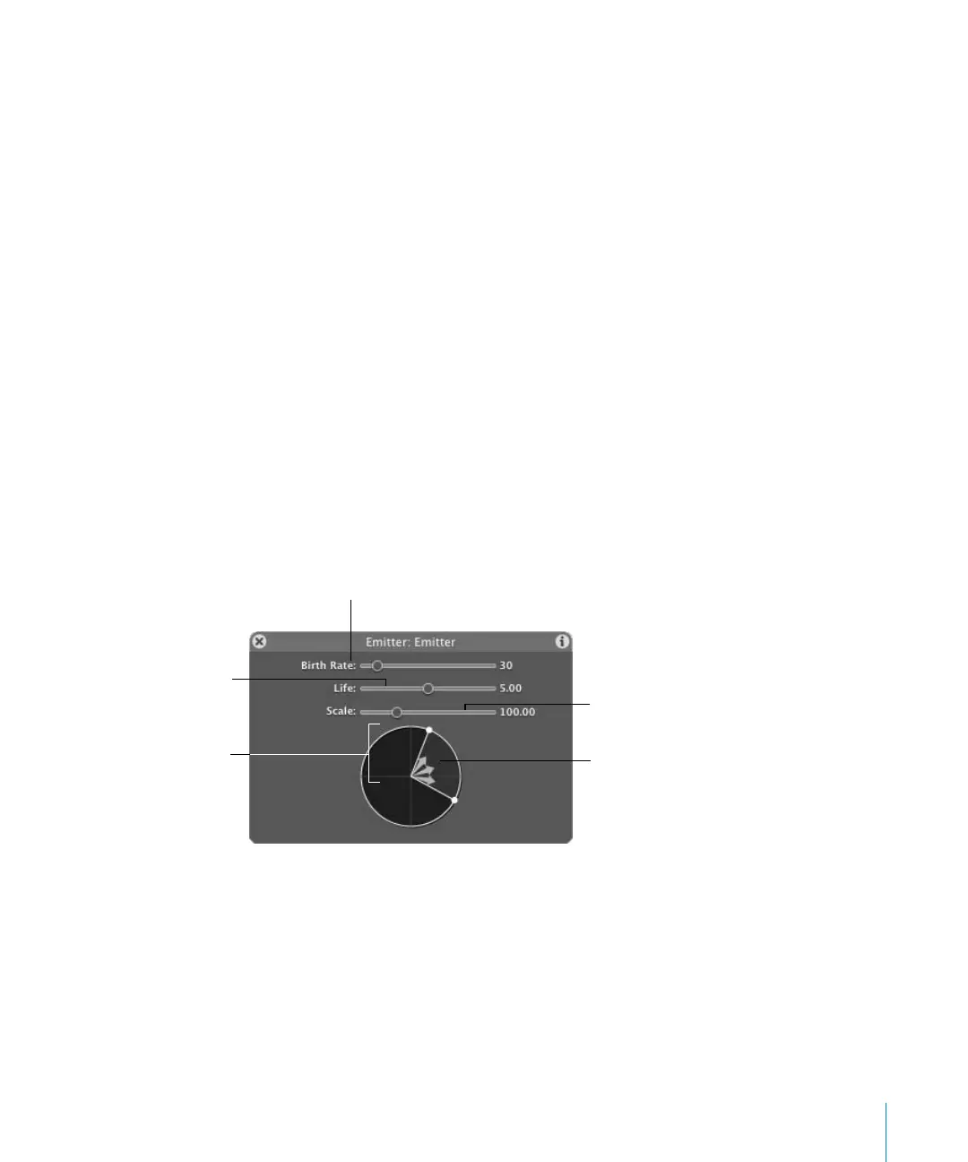 tab in the Inspector. Don’t be alarmed: The single-shape Particle Emitter tab contains