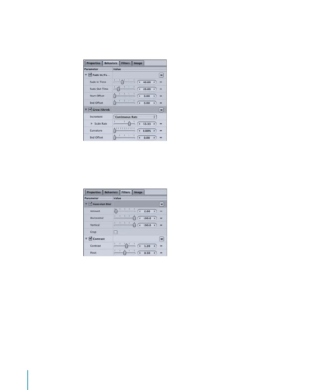 The Behaviors tab contains all controls for any behaviors that are applied to the