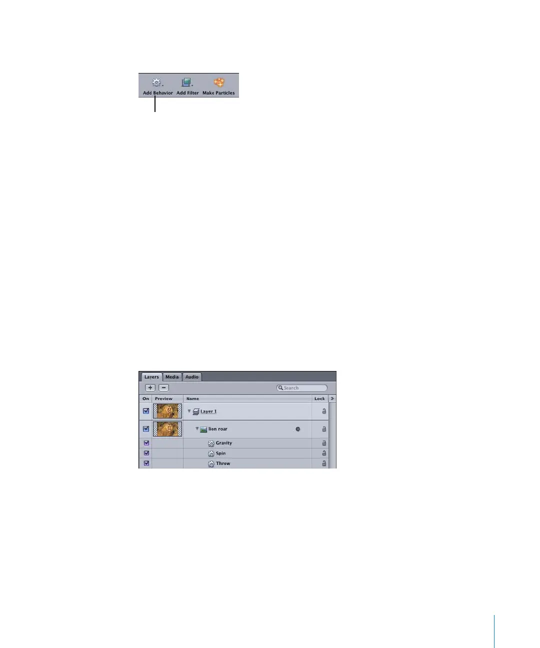 Note: You can also apply behaviors directly to layers in the Layers tab or Timeline. In