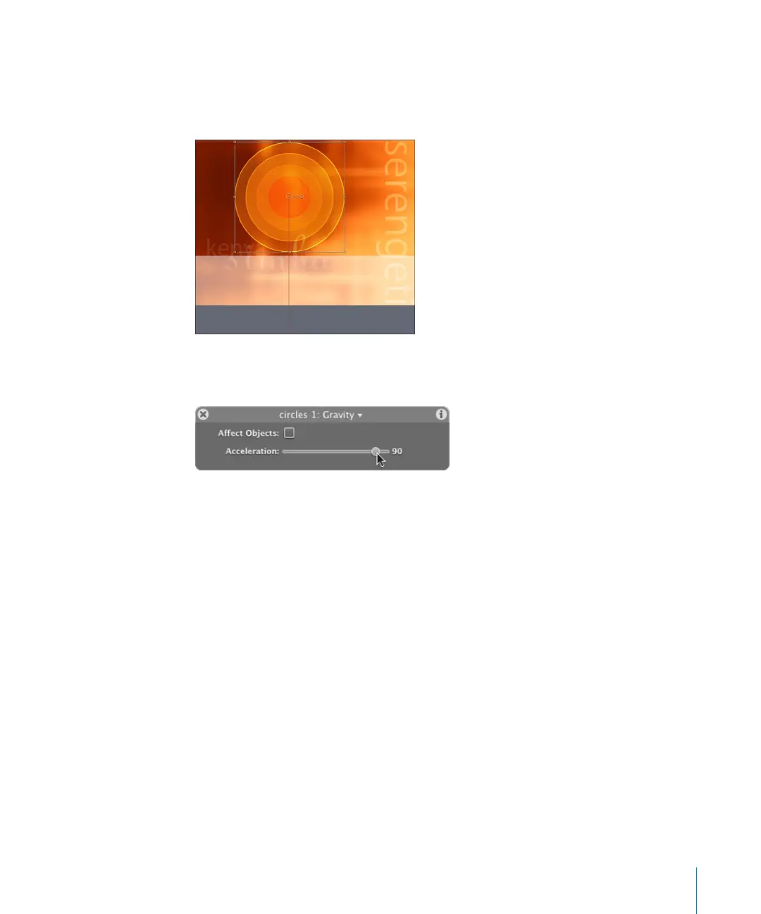 rate. If Gravity is applied to only the small, orange center circle, for example, only the