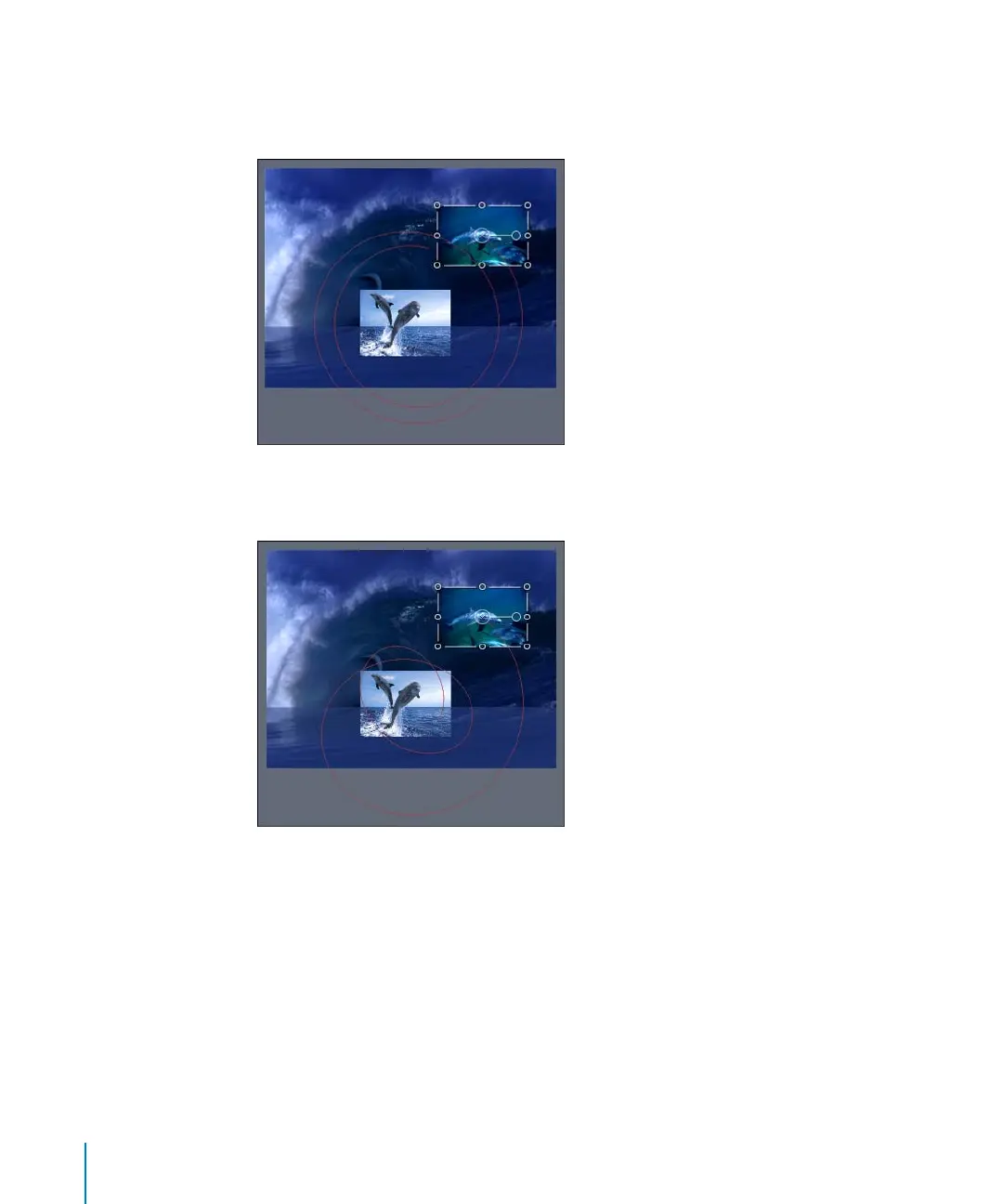 In the second image, the Drag parameter of the Orbit Around behavior is adjusted in