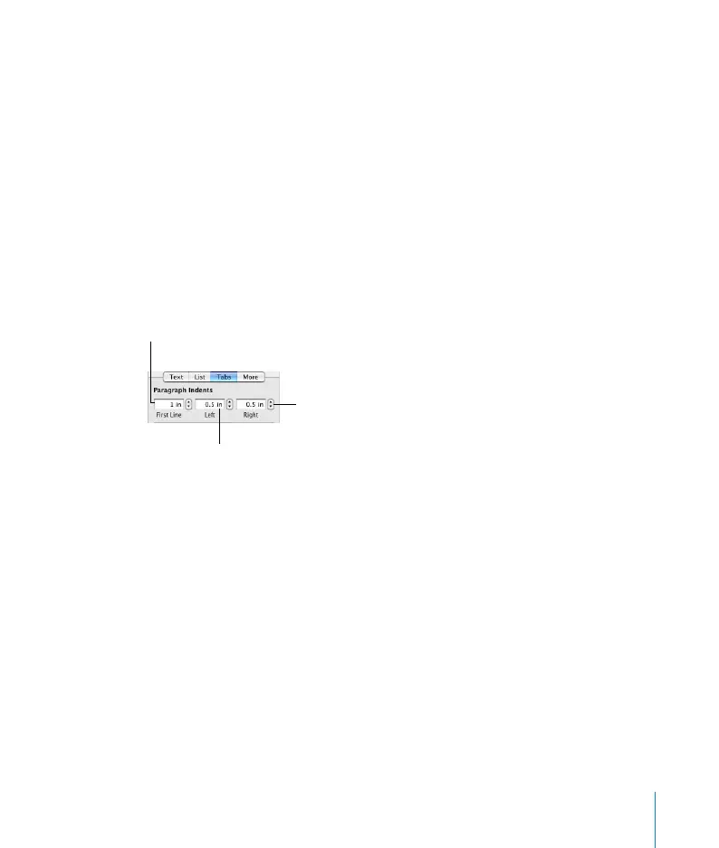 paragraph indents in the Tabs pane of the Text Inspector.