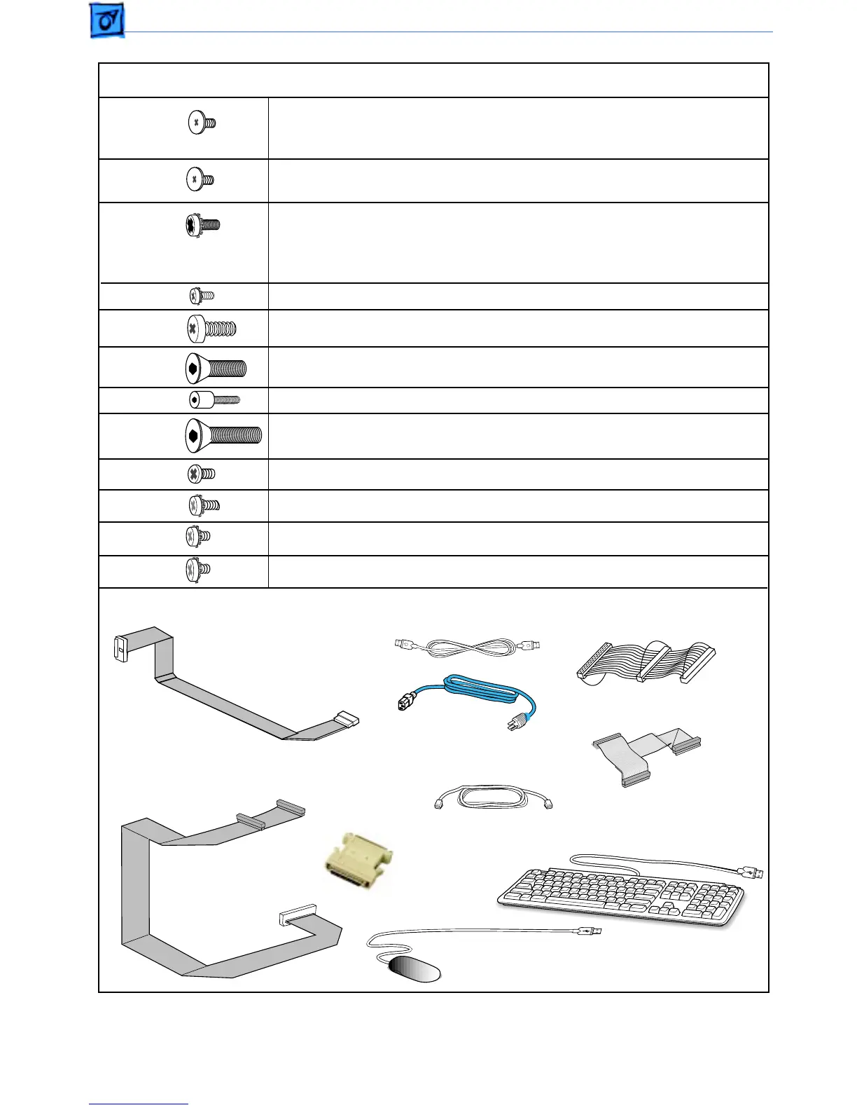 (1) Hard drive carrier retainer, (4) PCI slot covers (same screw can be used