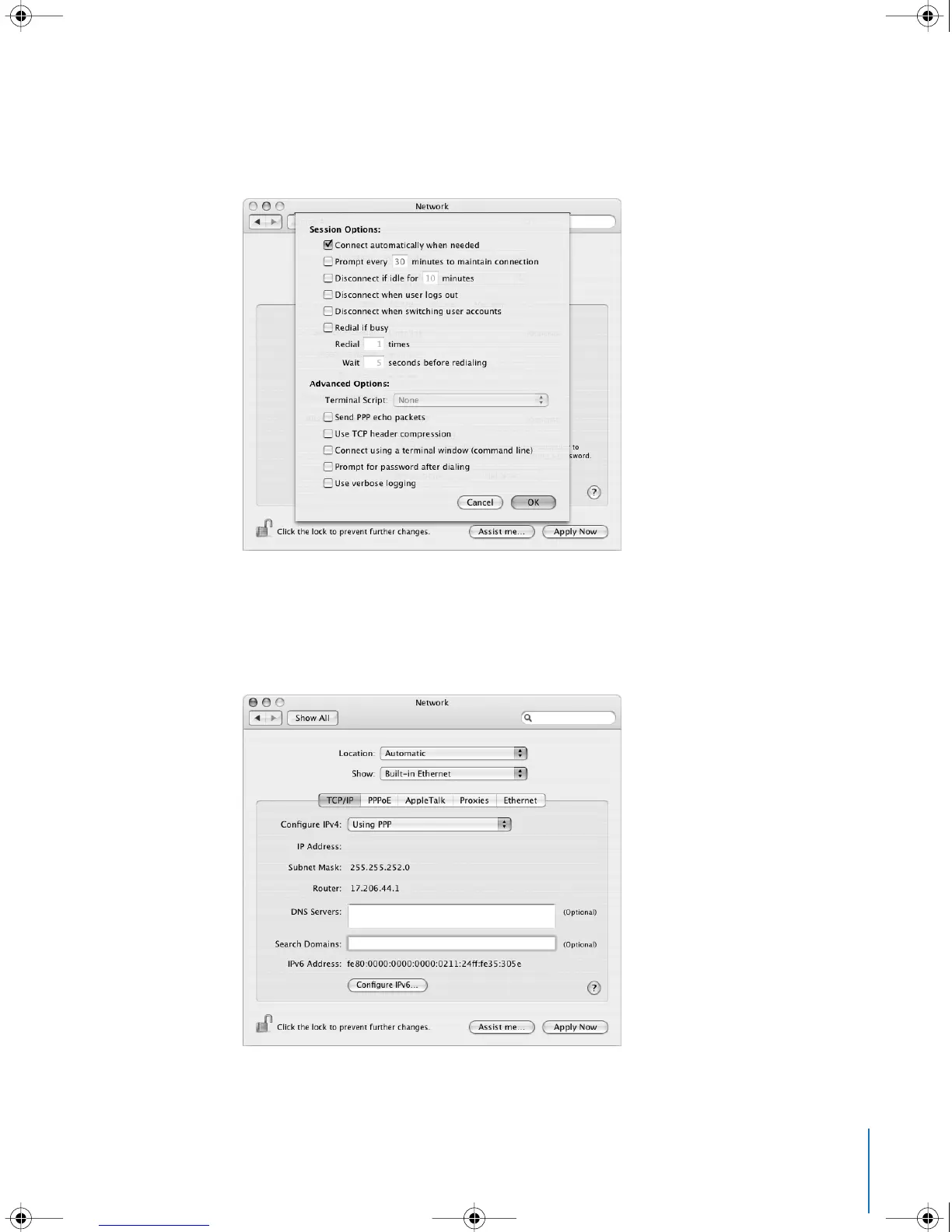 4 Click TCP/IP and choose either Using PPP or Manually from the Configure IPv4 pop-up