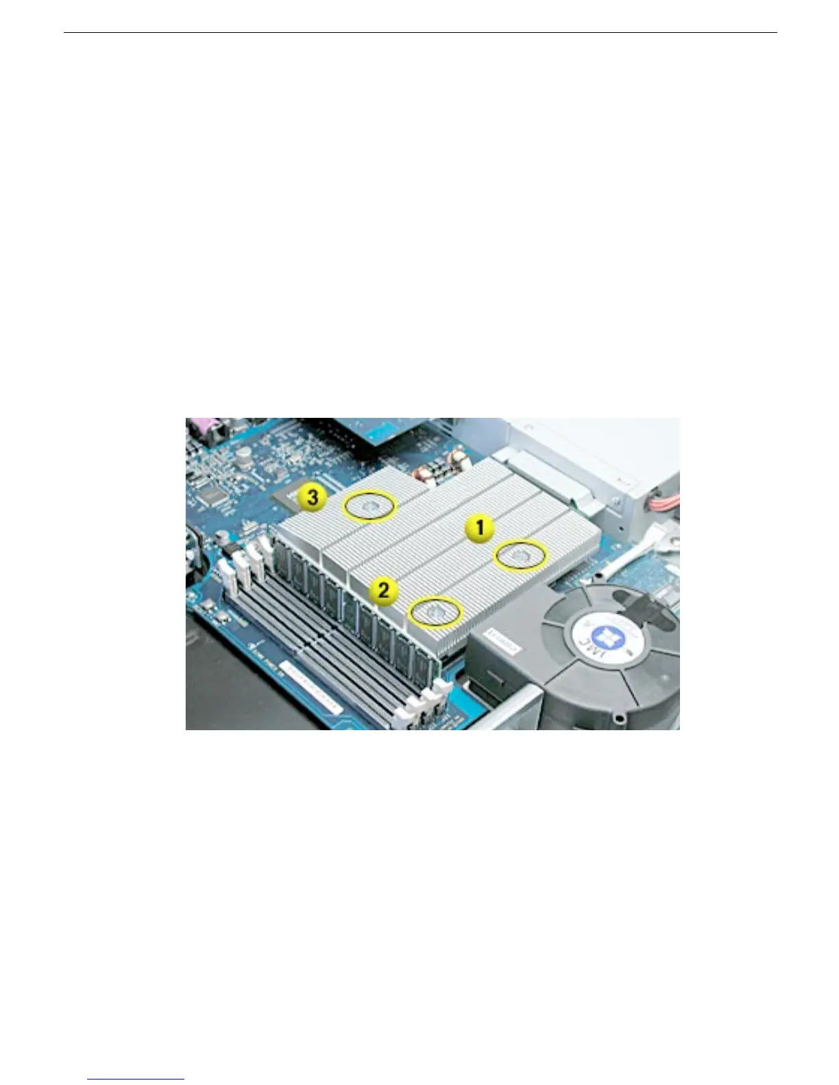 7. Again tighten the screws in the order indicated to affix the heatsink securely to the
