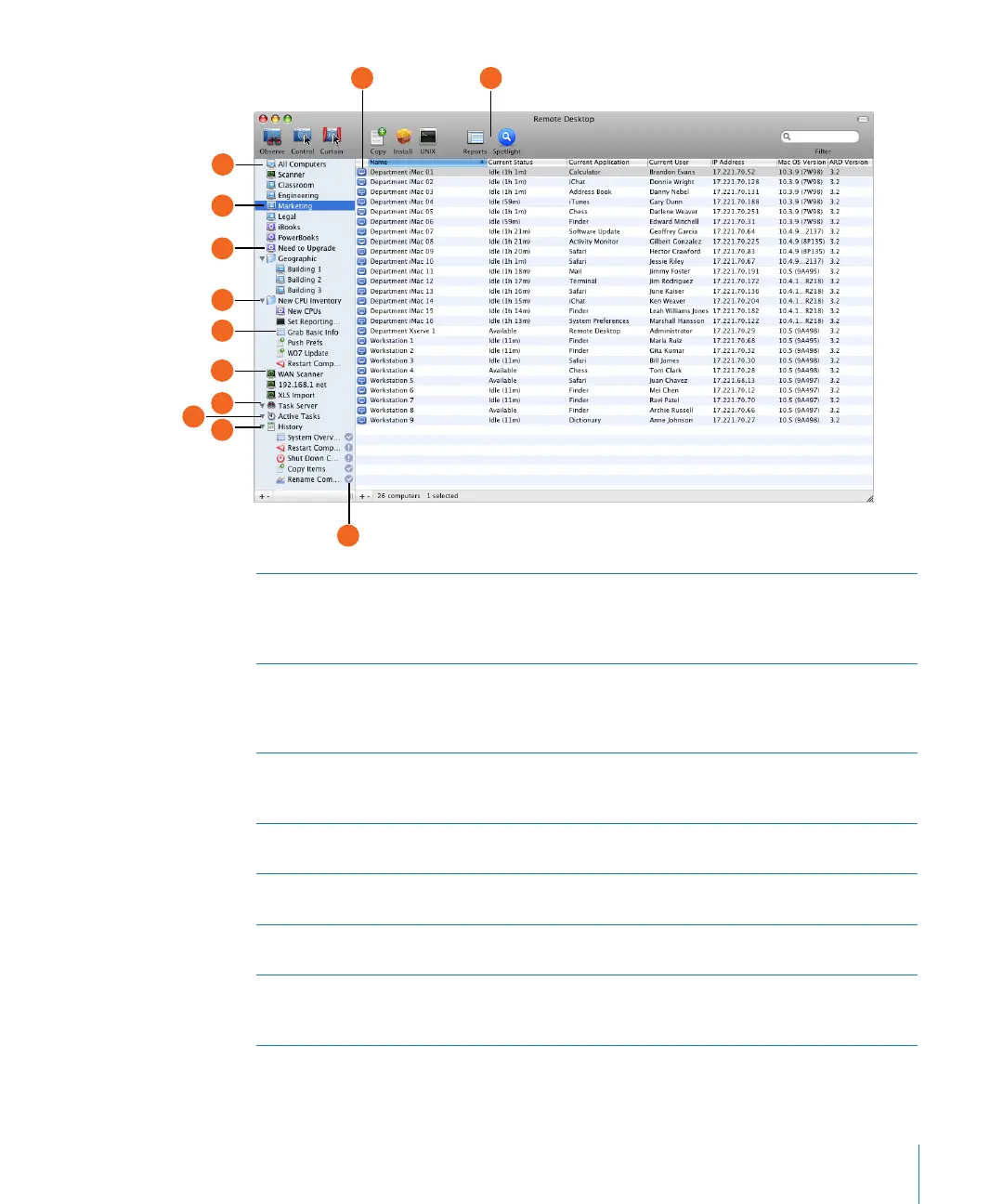 Apple Remote Desktop computer lists: A list of computers you create to group computers