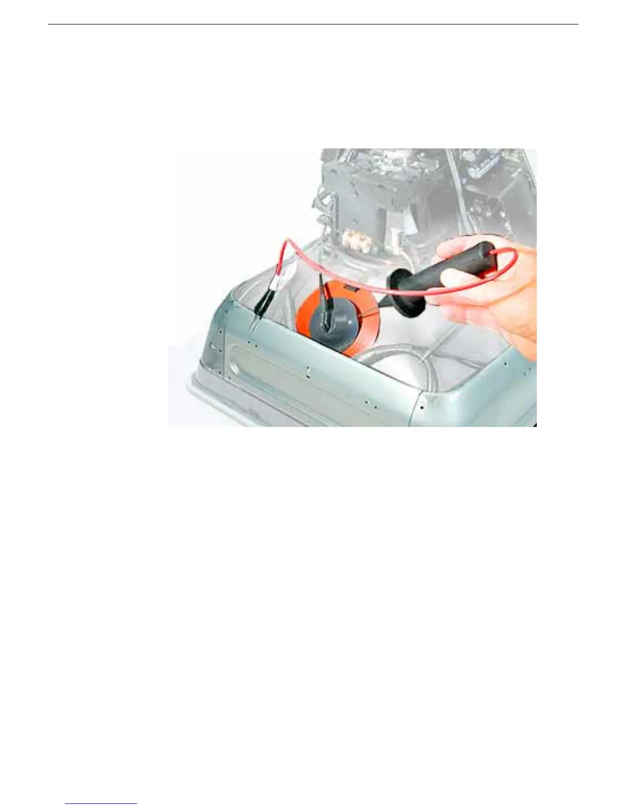 1. Attach the grounding clip of the CRT discharge tool to the metal frame of the CRT.