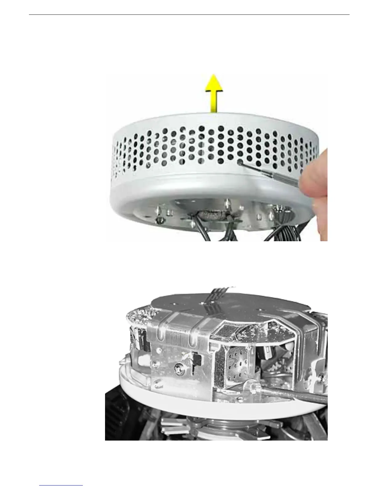 1. Using a jeweler's screwdriver, depress five plastic tabs while pulling up on the video