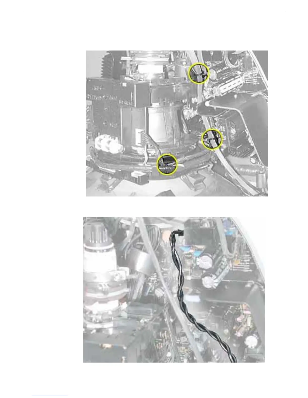 5. Use wire cutters to cut four tie wraps. The three tie wraps on right side of CRT neck