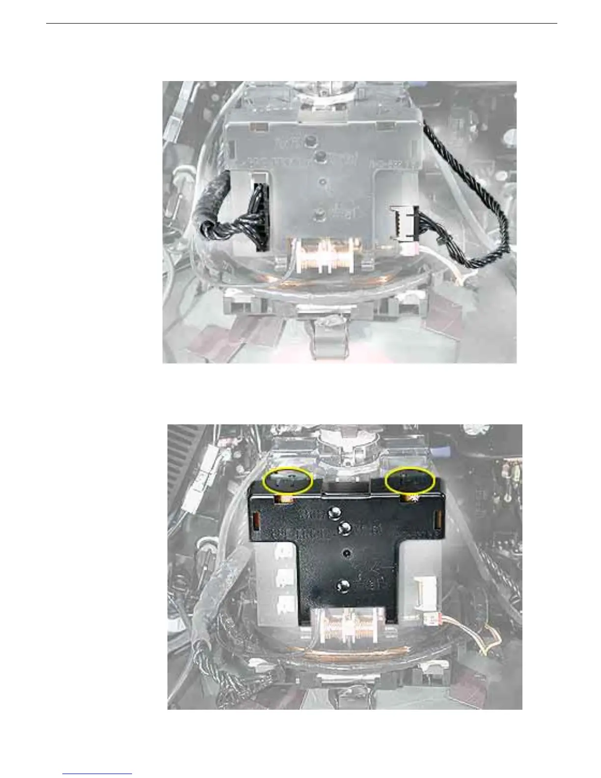 7. Disconnect two anode cables from connectors at the rear of the CRT/yoke board.