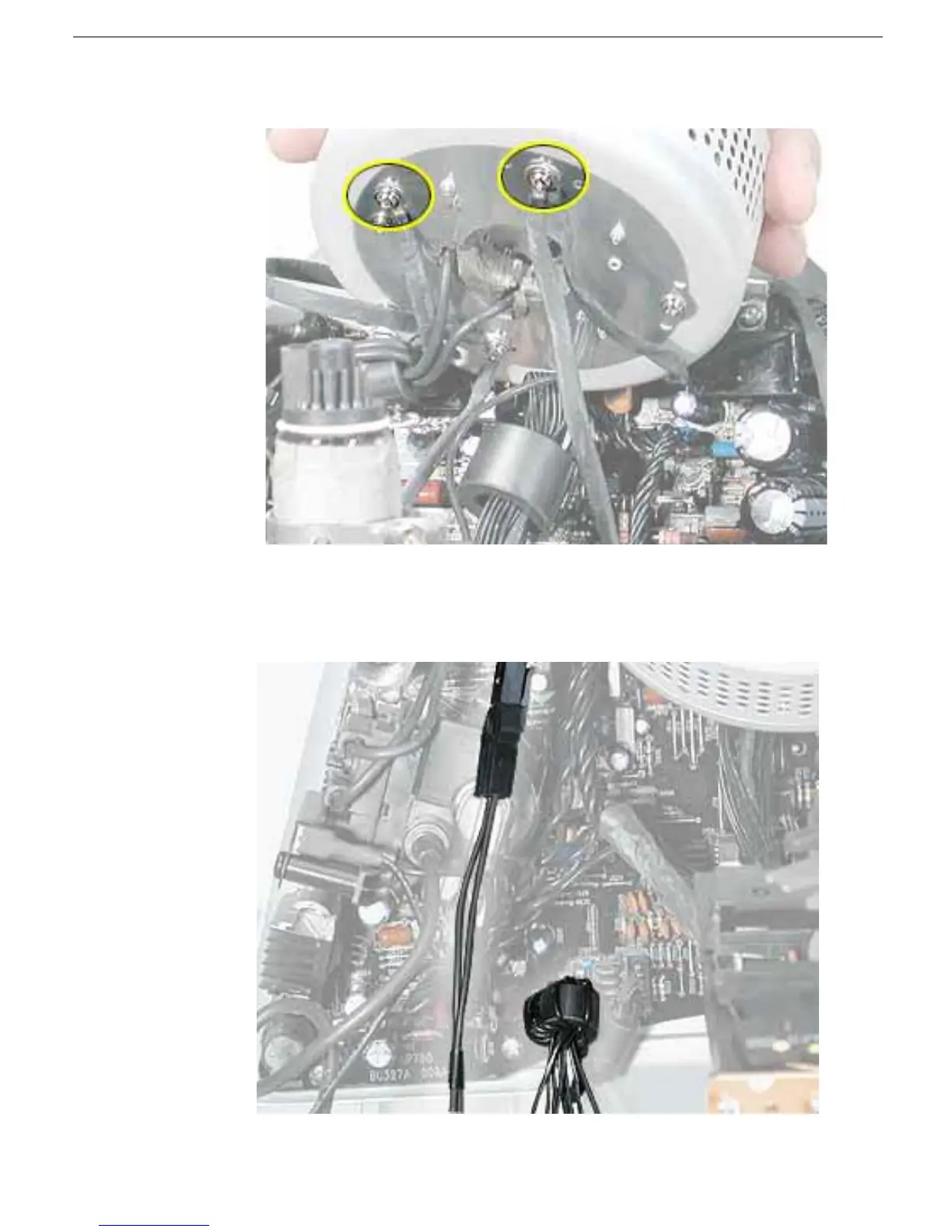 Disconnect the CRT ground cable (1) and the control board cable (2) from connector