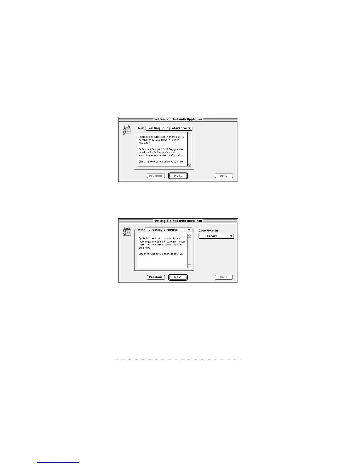 Apple Fax opens and presents the setup window.