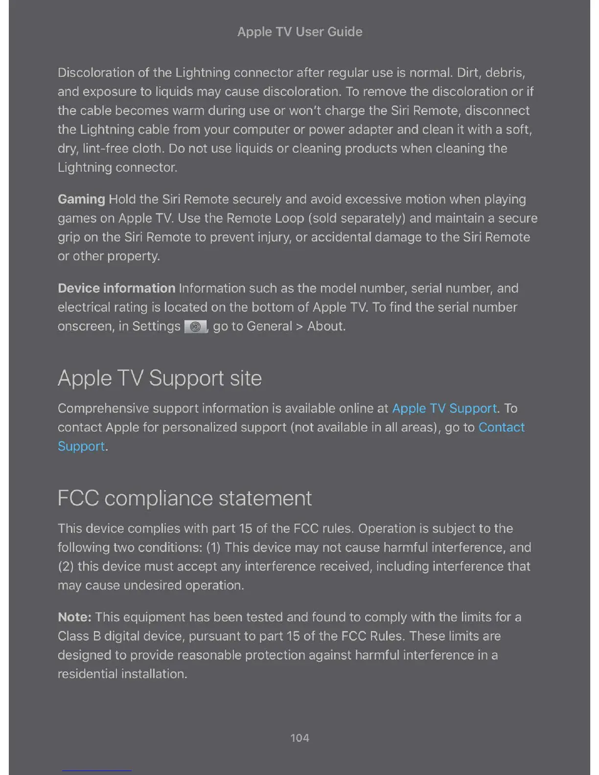 Comprehensive support information is available online at Apple TV Support . To