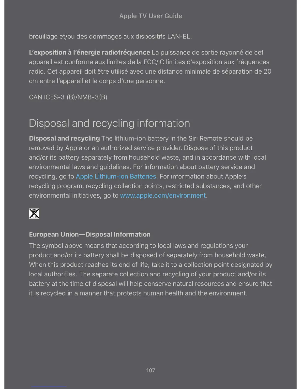 Disposal and recycling The lithium-ion battery in the Siri Remote should be