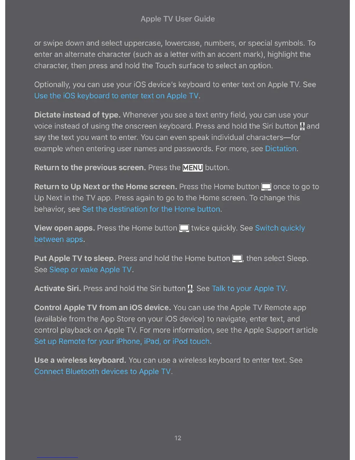 Use the iOS keyboard to enter text on Apple TV.