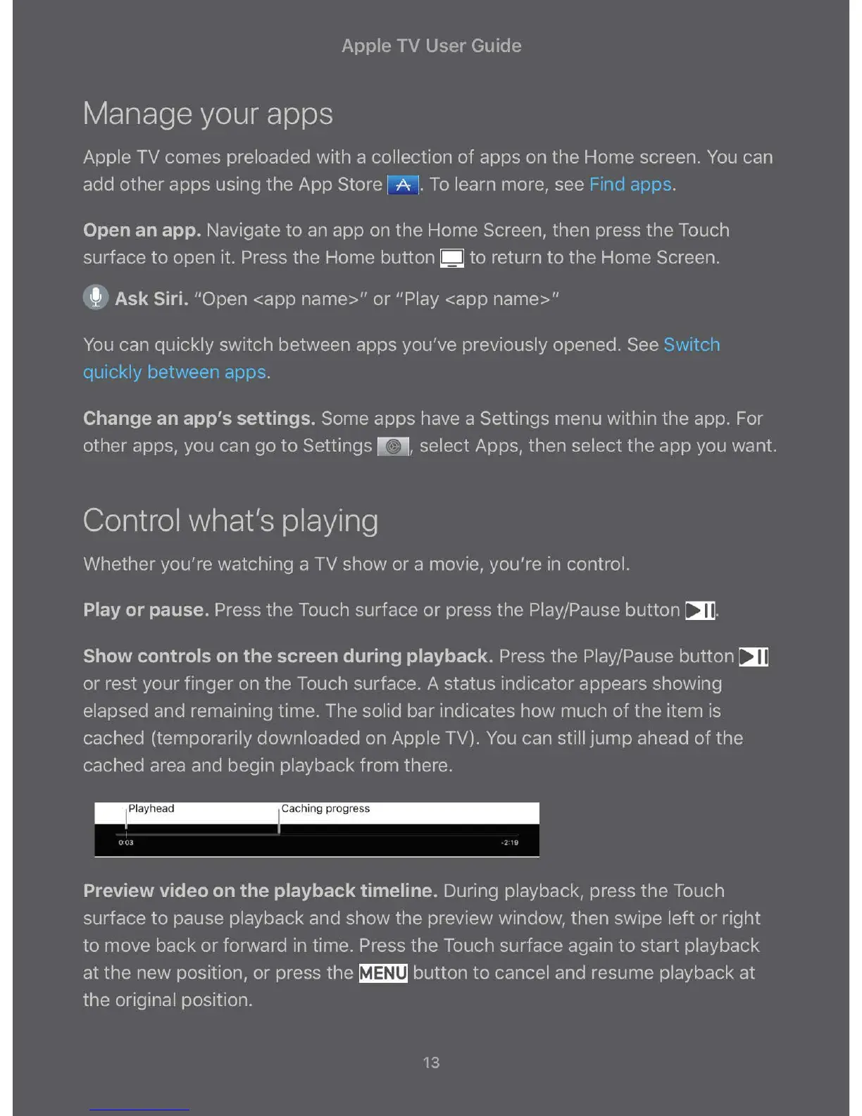 Apple TV - Managing Apps and Playback; App Management; Media Playback Control