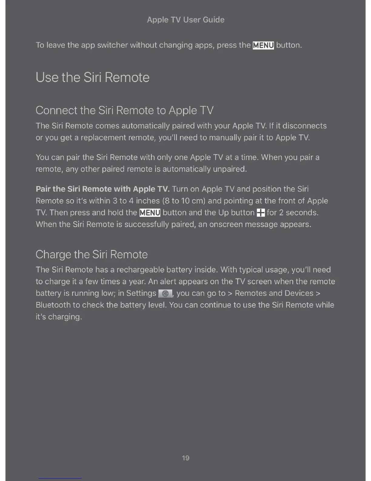 Apple TV - Siri Remote Operation; Pairing and Charging the Remote; Gaming with the Siri Remote