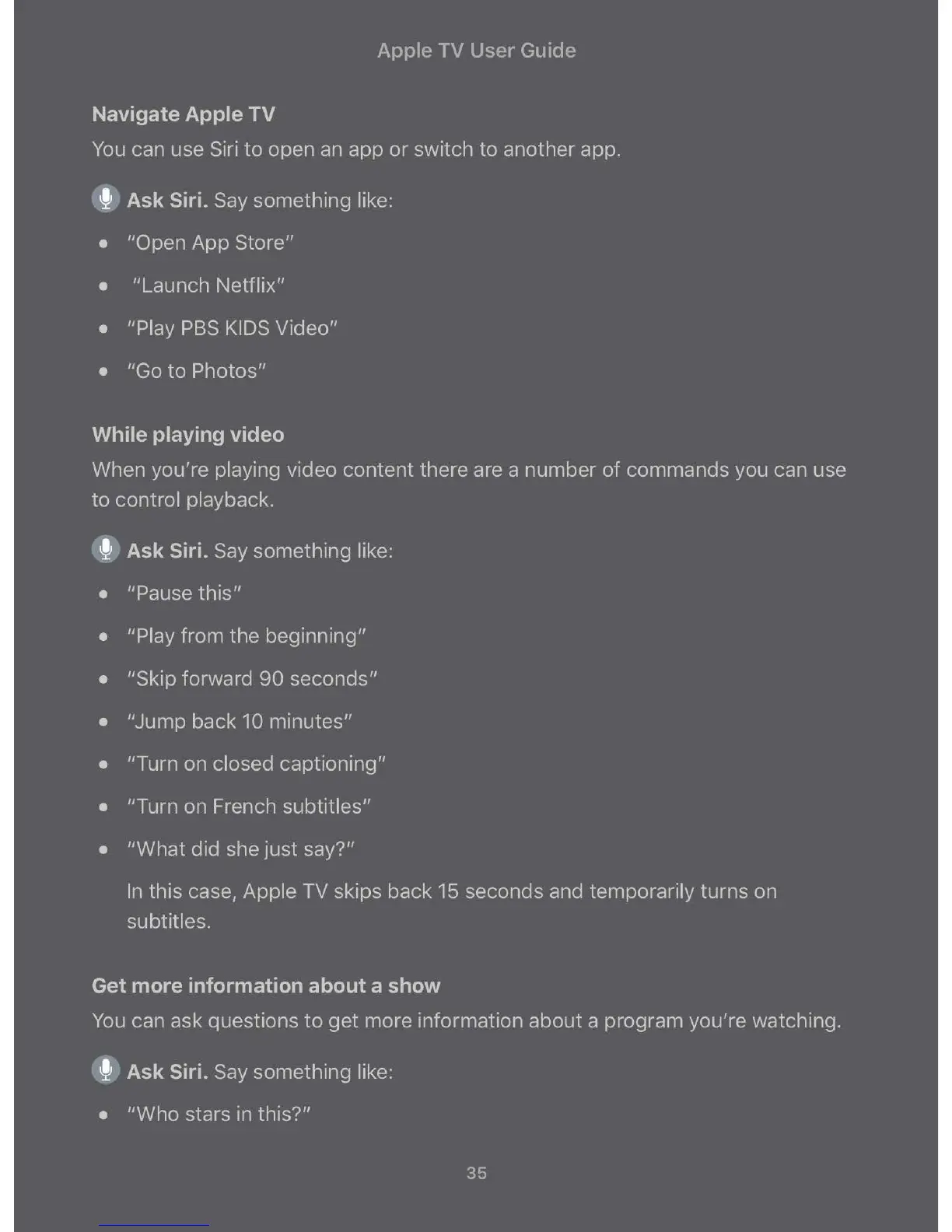 In this case, Apple TV skips back 15 seconds and temporarily turns on