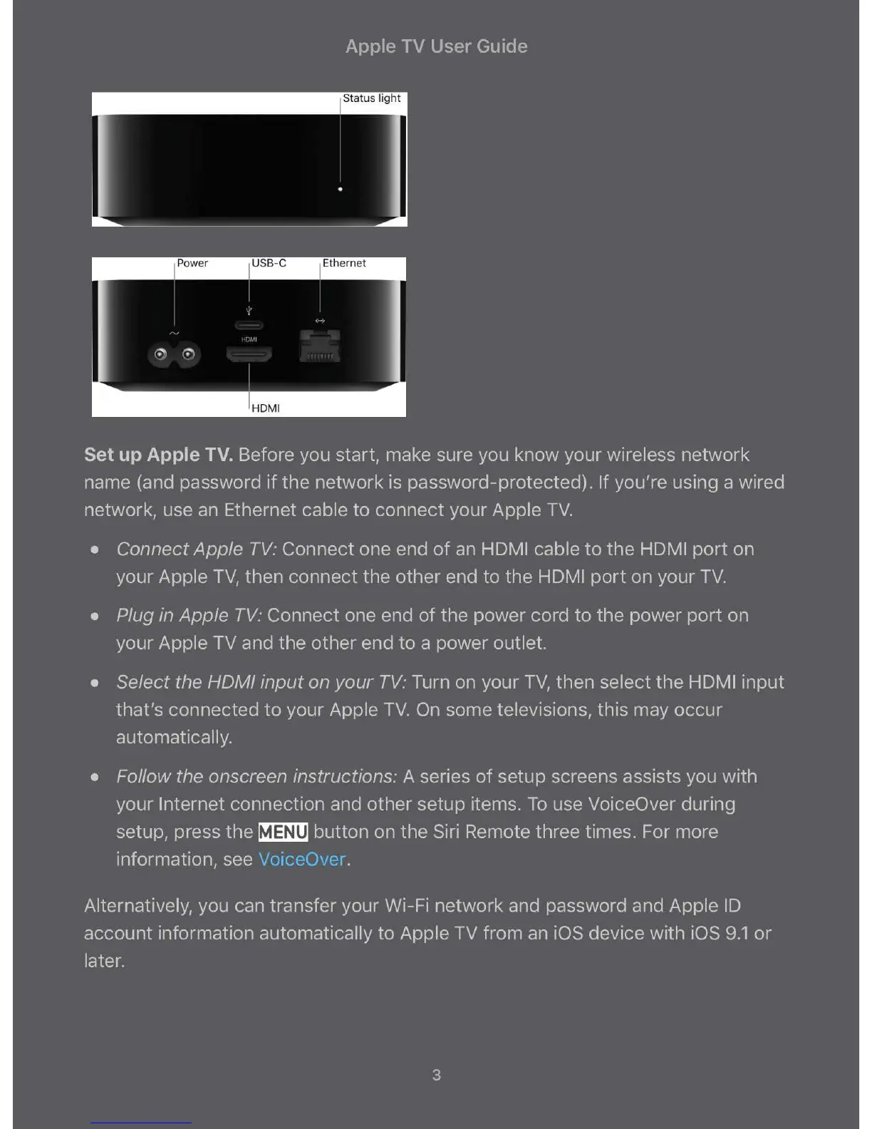 Apple TV - Setting Up Your Apple TV; Connecting Apple TV Hardware; Configuring TV Input; Onscreen Setup Instructions
