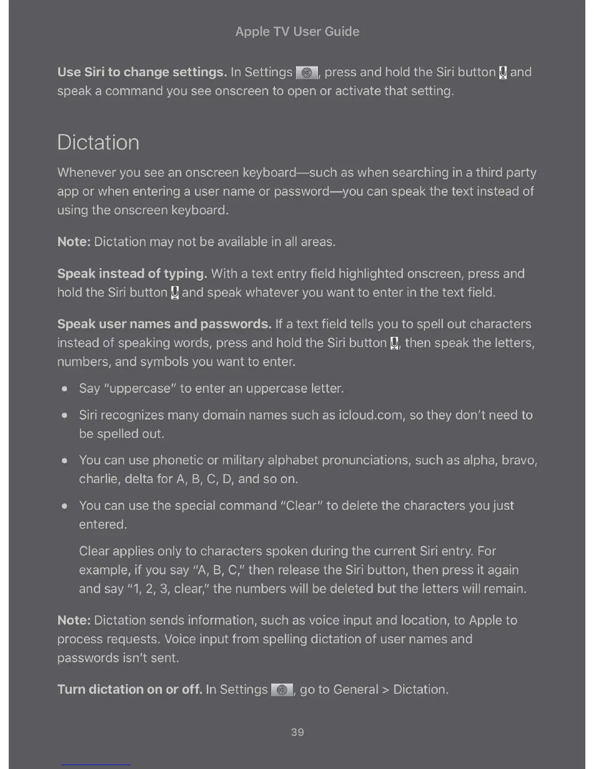 Note: Dictation sends information, such as voice input and location, to Apple to