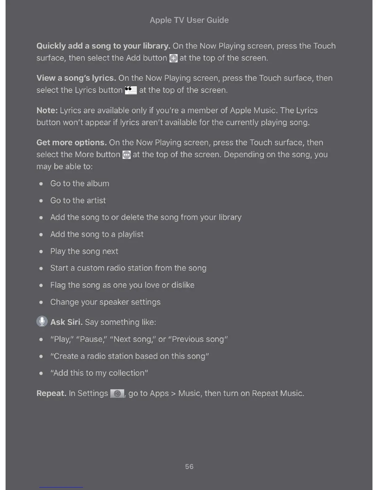 Get more options. On the Now Playing screen, press the Touch surface, then