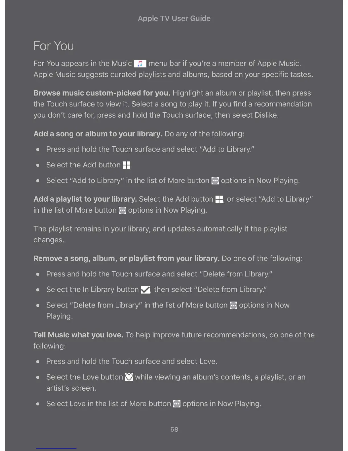 you don't care for, press and hold the Touch surface, then select Dislike.