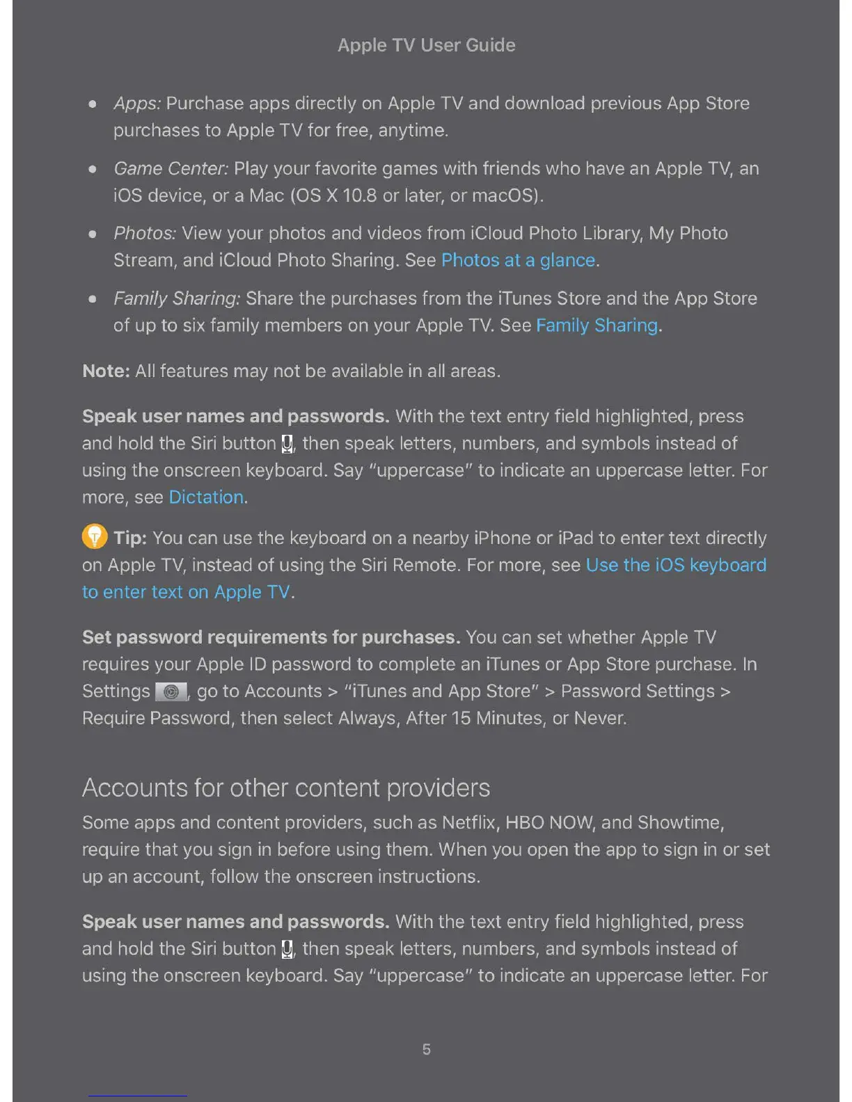 on Apple TV, instead of using the Siri Remote. For more, see Use the iOS keyboard