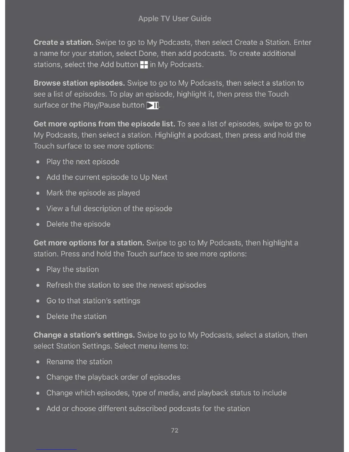 Get more options for a station. Swipe to go to My Podcasts, then highlight a