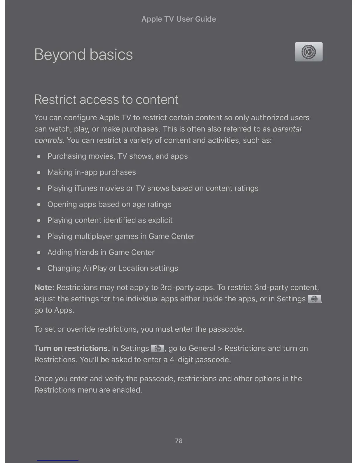 Apple TV - Managing Storage and Restrictions; Passcode and Content Configuration; Storage Management
