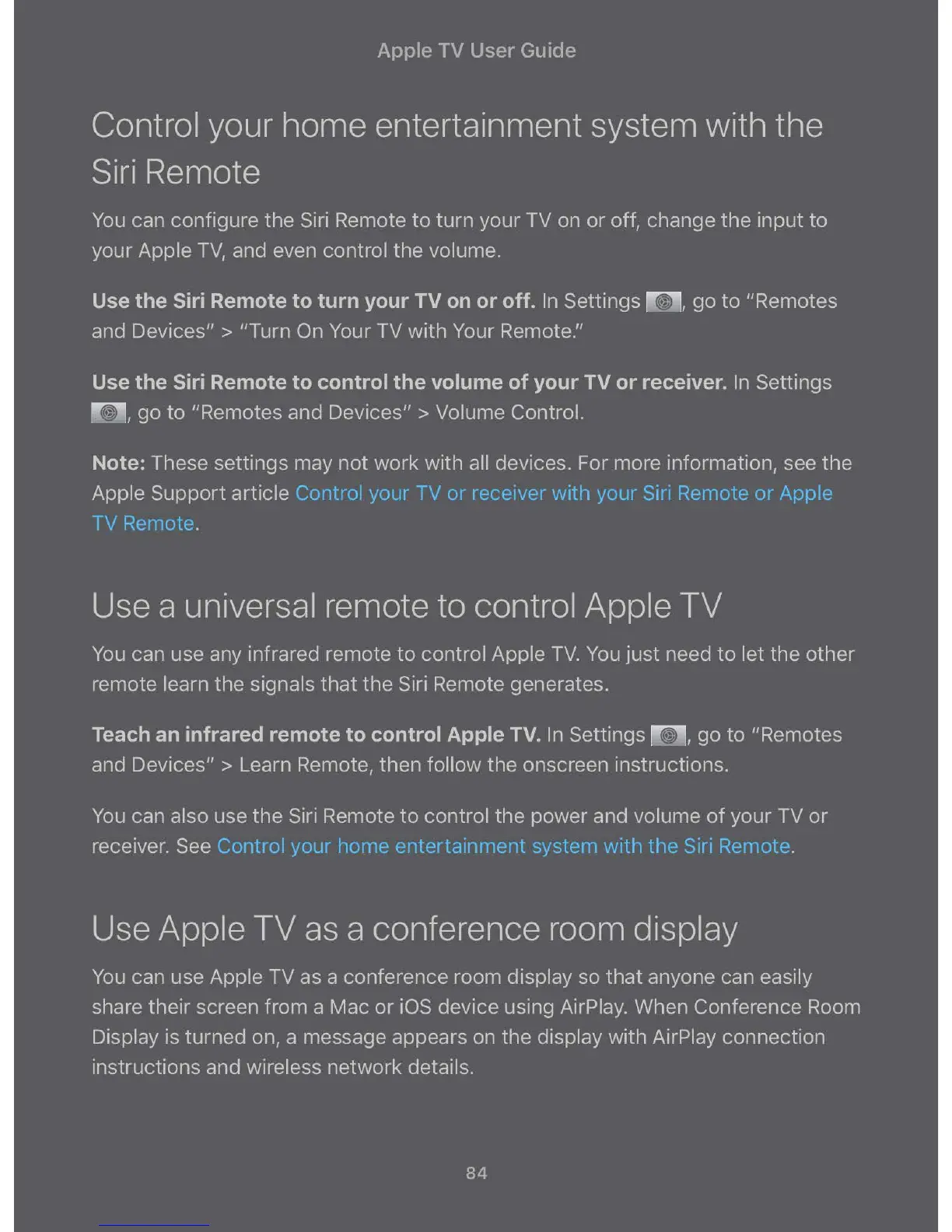 Apple Support article Control your TV or receiver witl1 your Siri Remote or Apple