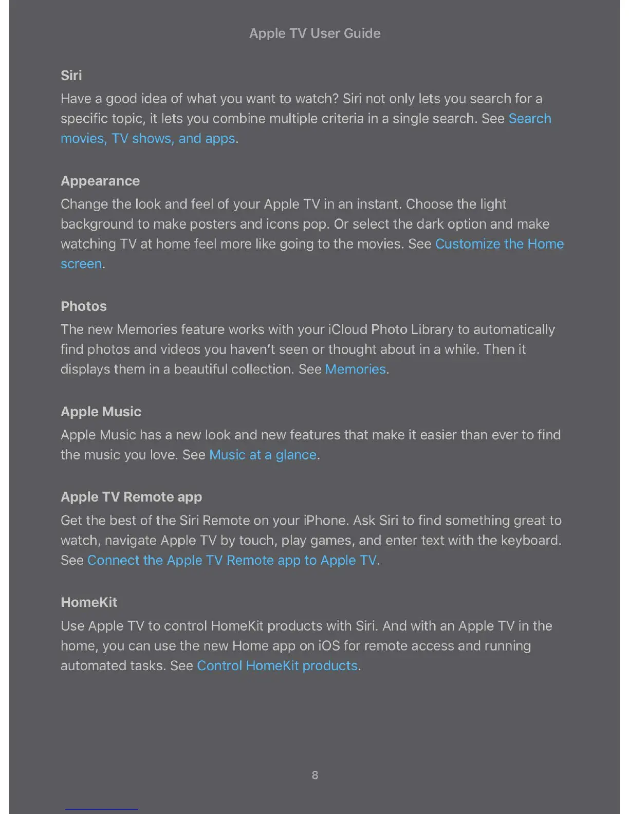 watch, navigate Apple TV by touch, play games, and enter text with the keyboard.