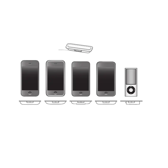 Nota: Si el adaptador para su modelo de iPod o iPhone no viene incluido en su base