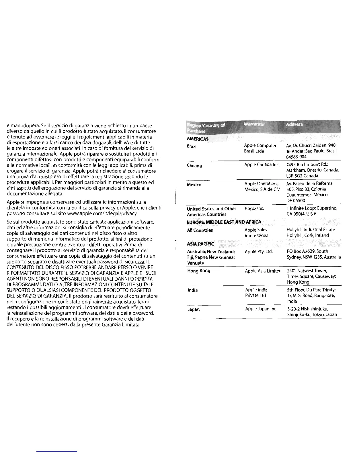possono consultare sui sito www.apple.comlitl1egallprivacy.