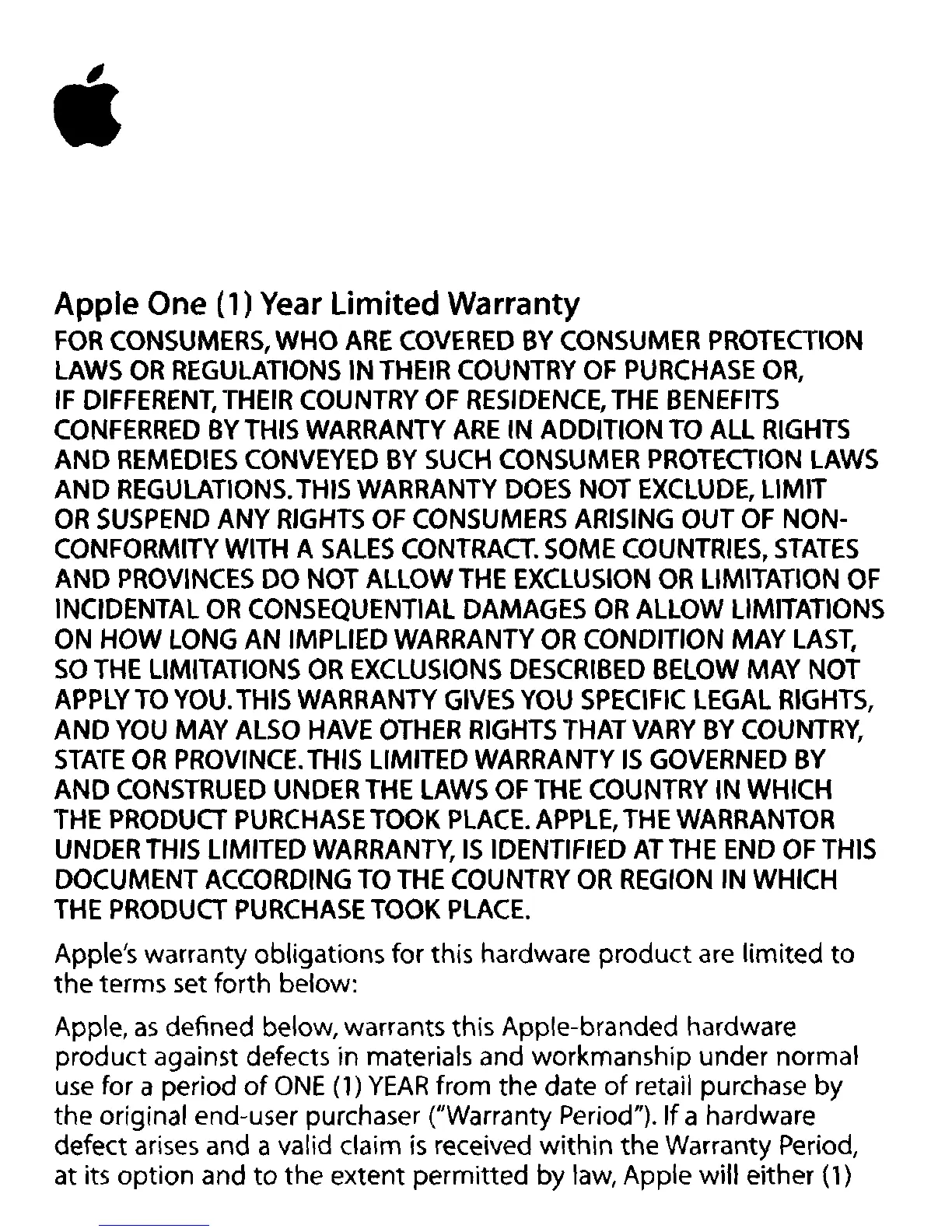 defined below, warrants this Apple-branded hardware