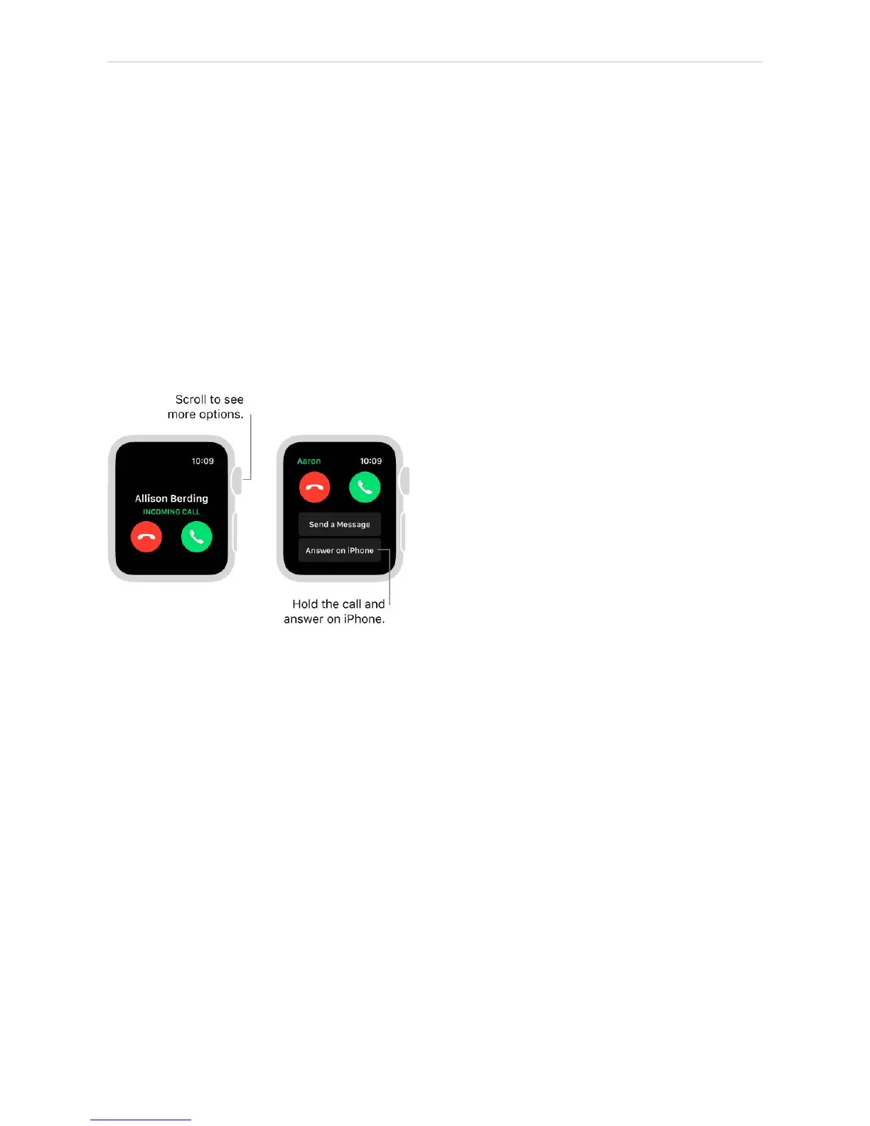 Switch a call from Apple Watch to iPhone. >)+"%&3'"8+,-&#,&=22"%&>'3()J&O4$3&$7+2%&42