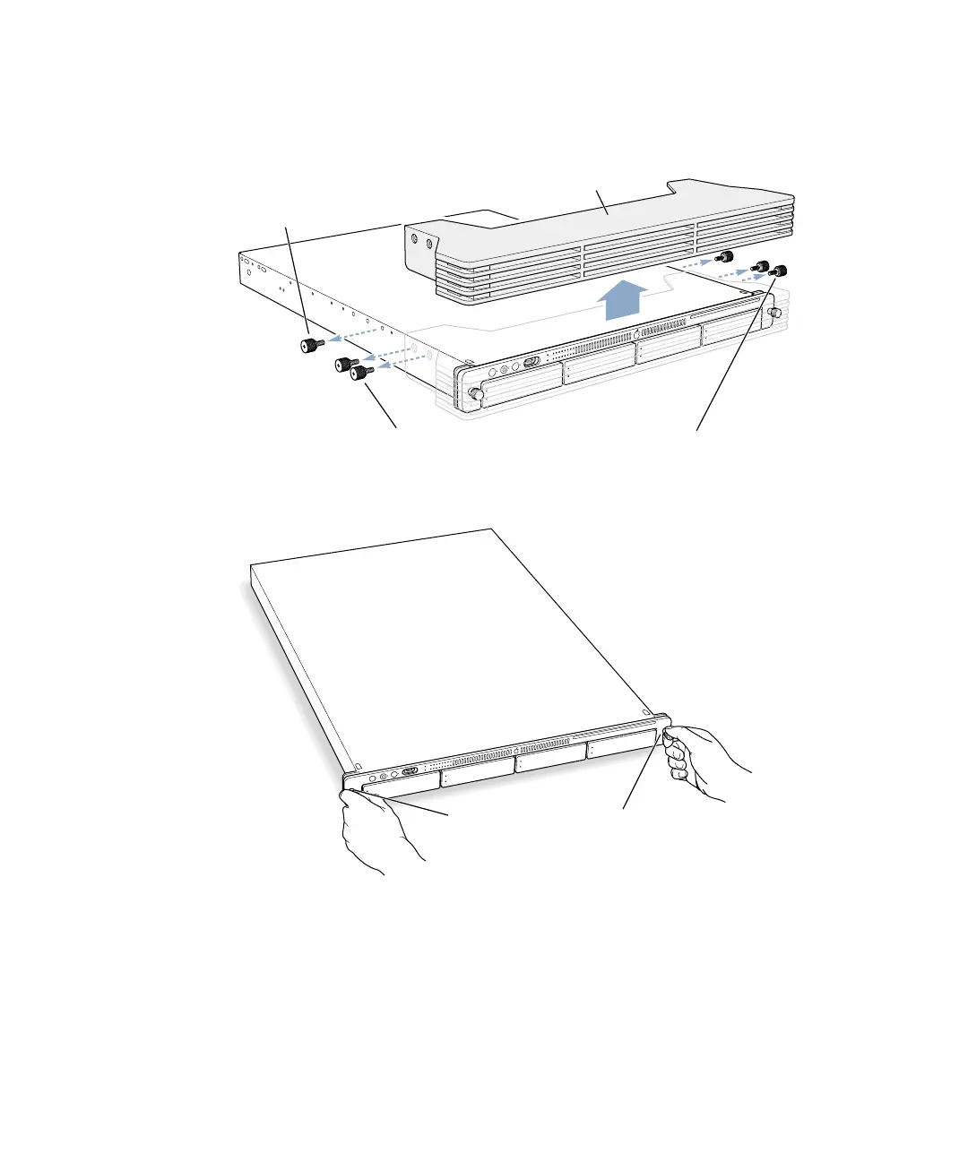 4 Loosen the two thumbscrews (one on each side) at the front of the server’s enclosure.