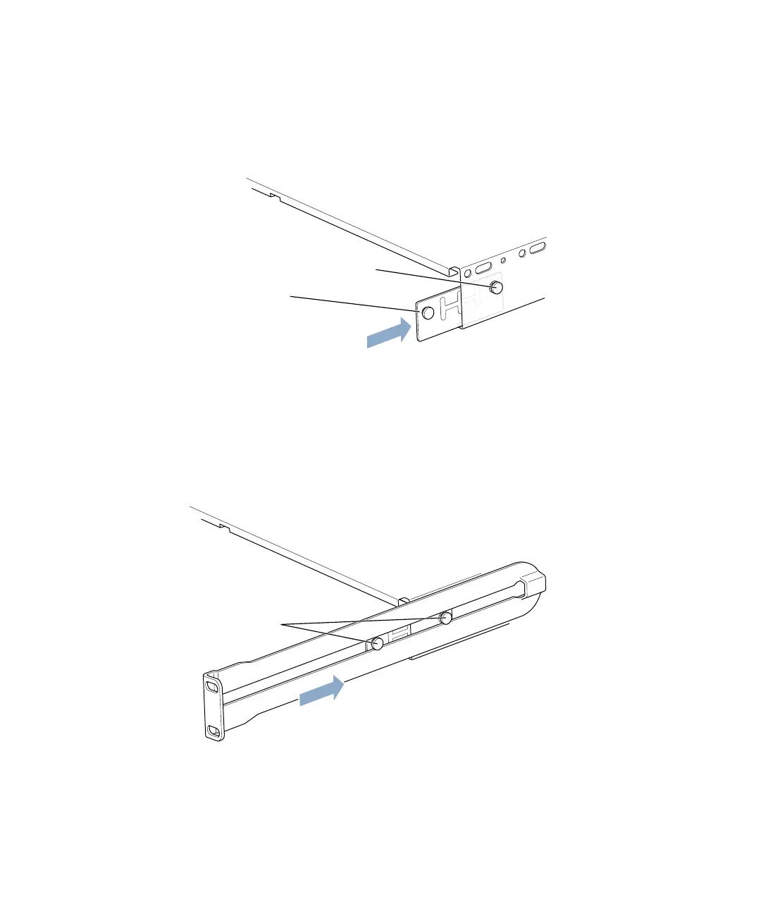 3 At the back of the server, position the small bracket inside the server’s cover so that the head