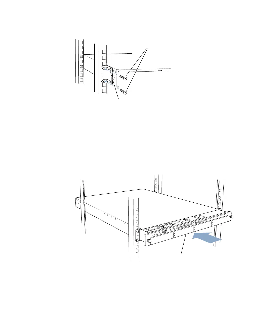 After the cover has been firmly attached to the rack, tighten the two short screws completely.